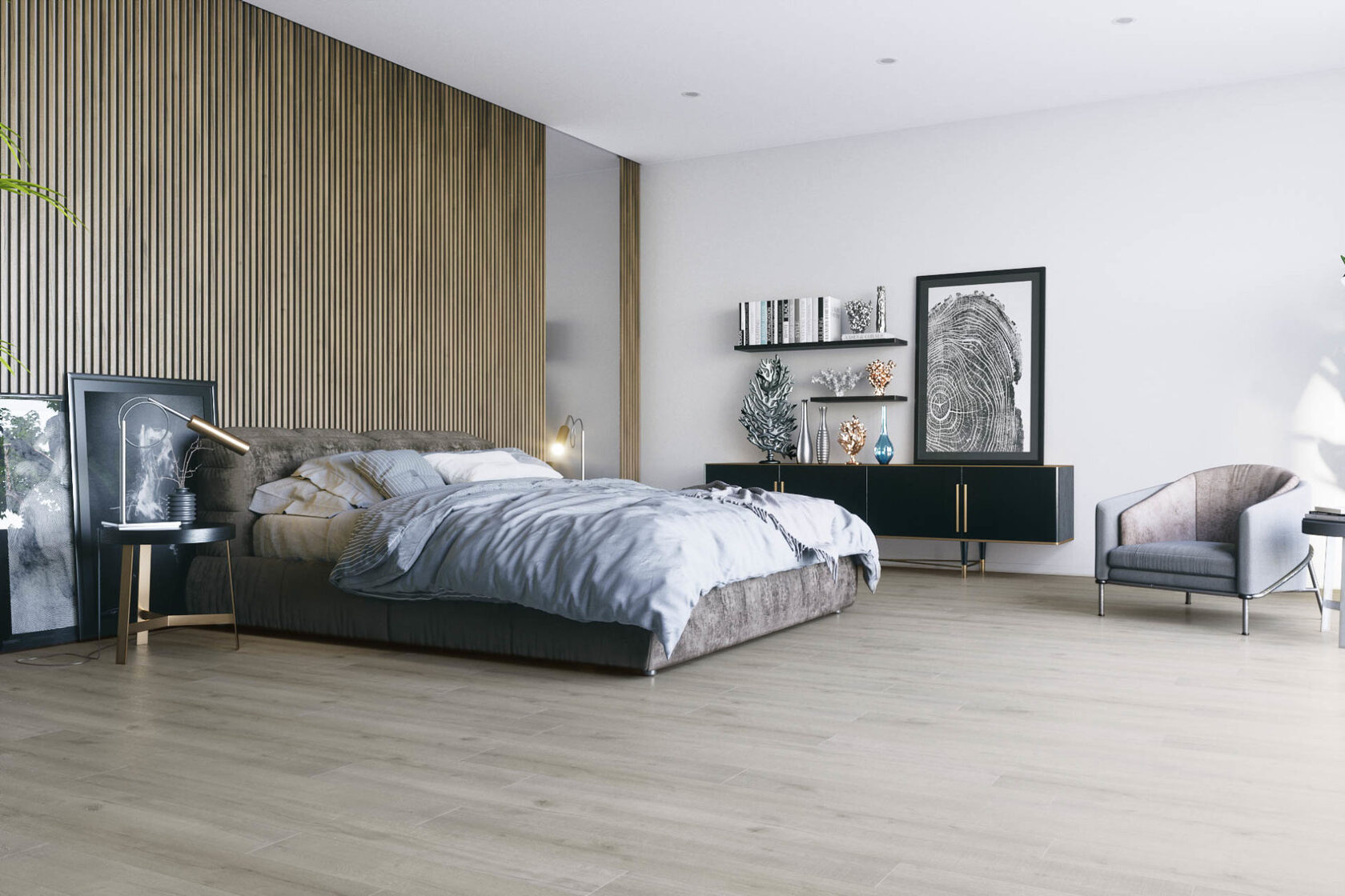 Популярное покрытие, имитирующее натуральное дерево. Легкий в укладке, устойчивый к истиранию и влаге (в зависимости от класса). Имеет широкий ассортимент текстур и цветов. Идеален для жилых комнат и офисов.